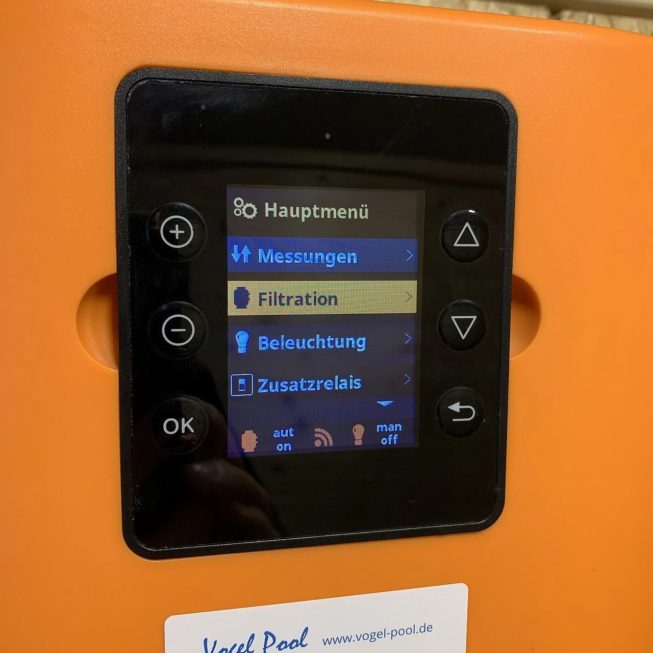 Sofern die automatische Dosieranlage mittels Relais mit der Filteranlage verbunden ist, so kann die Rückspülung komfortabel über die automatische Dosieranlage erledigt werden.